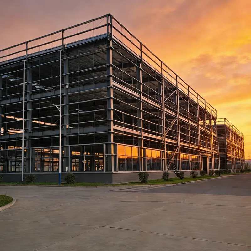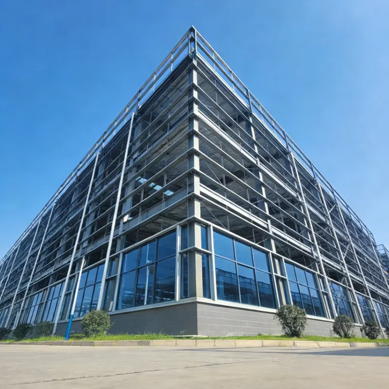 Bloco de fábrica com estrutura de aço de vários andares, projetado com perfis de aço premium para suporte de carga estável, resistência sísmica e ao vento. A pré-fabricação de fábrica proporciona alta precisão, montagem rápida no local e layout espacial personalizável, adaptando-se a diversas necessidades de produção e armazenamento com espaçamento flexível de colunas e design de altura clara.